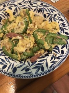 一軒目でオリオンビールを飲んだ後に、2件目で今度は家族経営をしている居酒屋さんに入りました。そこで家庭料理の人参しりしりとゴーヤチャンプルーを食べてホテルに戻りました。