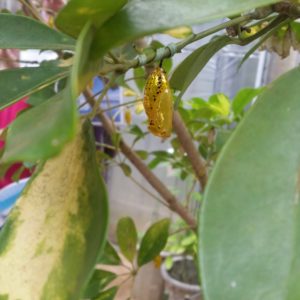 植物園ではとても大きな蝶が見れるというところだったんですけれども、何より衝撃だったのはその蝶のさなぎが金色だったことです。