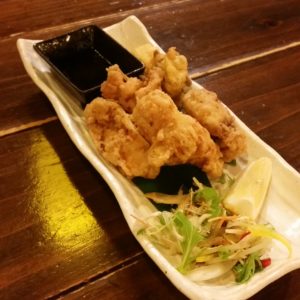 一軒目の居酒屋で、少しお酒を飲みながらハリセンボンの唐揚げを食べました。