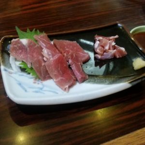 他のお肉の刺身に比べると、歯ごたえが固めで油も少なく淡白な感じでした。