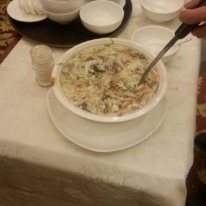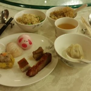 ご飯は飲茶でお茶を飲みながら、天津やチャーハンをテーブルバイキング形式で食べました。